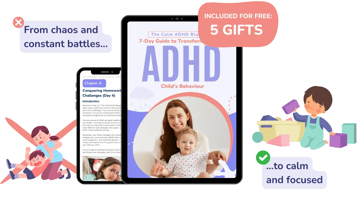 PLUS 5 FREE gifts that address your most pressing ADHD parenting challenges (total value of $184).